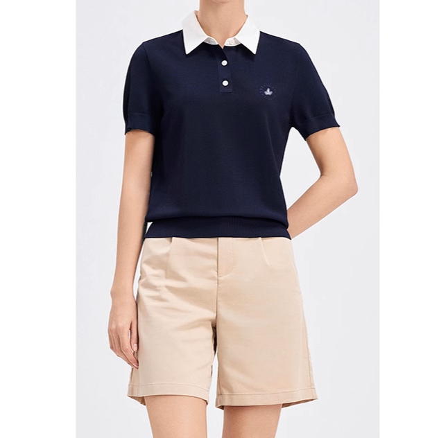 白の彩色ボタンがアクセントの半袖ポロシャツ