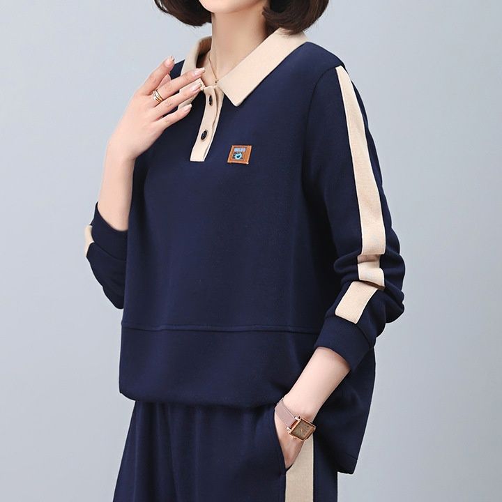 ネイビーとベージュの配色切替が上品で、袖のラインがアクセントとなっています。