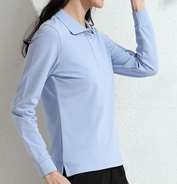 シンプルで使いやすいゴルフウェアレディース長袖ポロシャツ