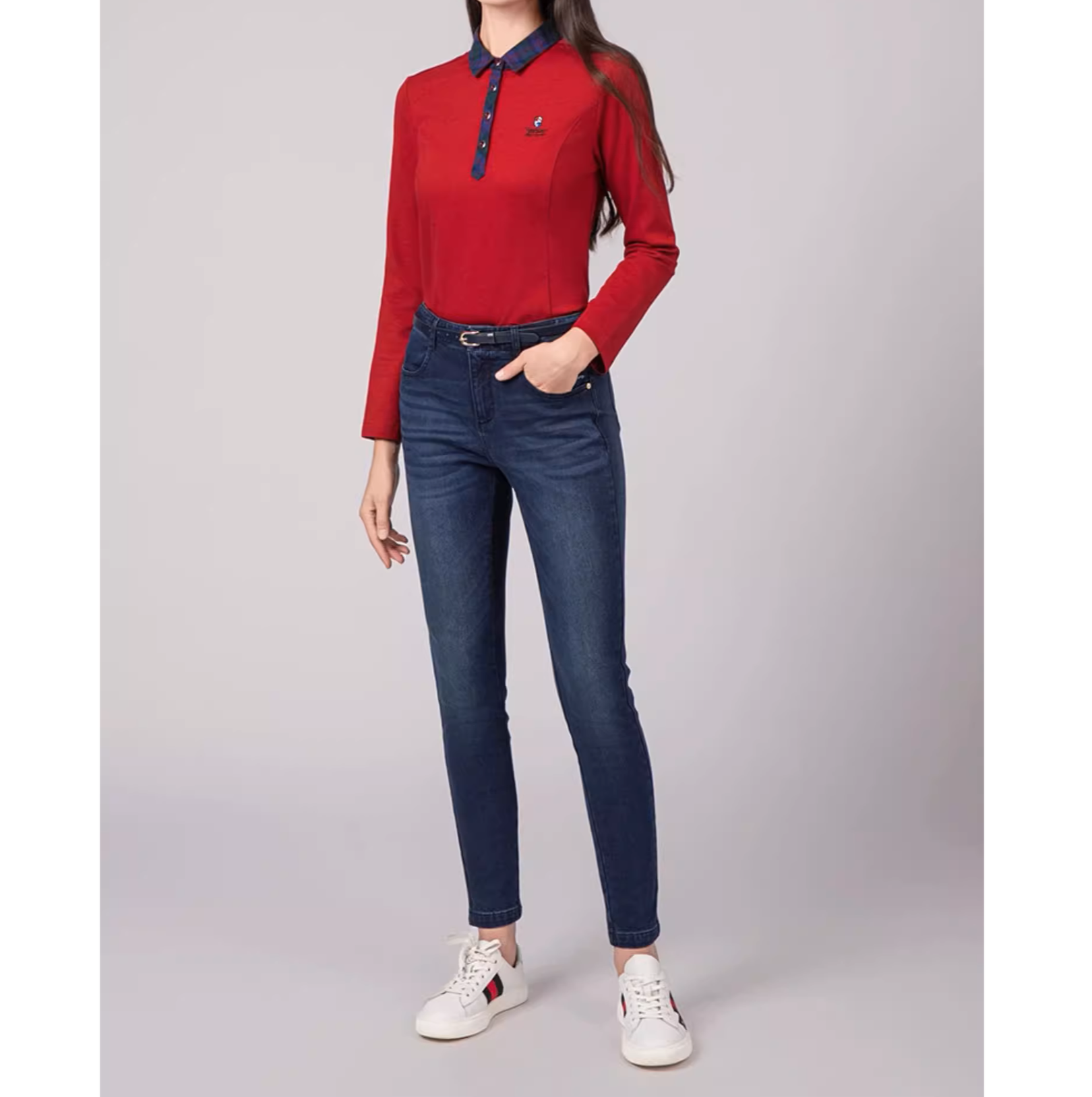 胸元のワンポイントロゴが控えめなアクセントになり、デニムと合わせるだけでこなれた印象に。