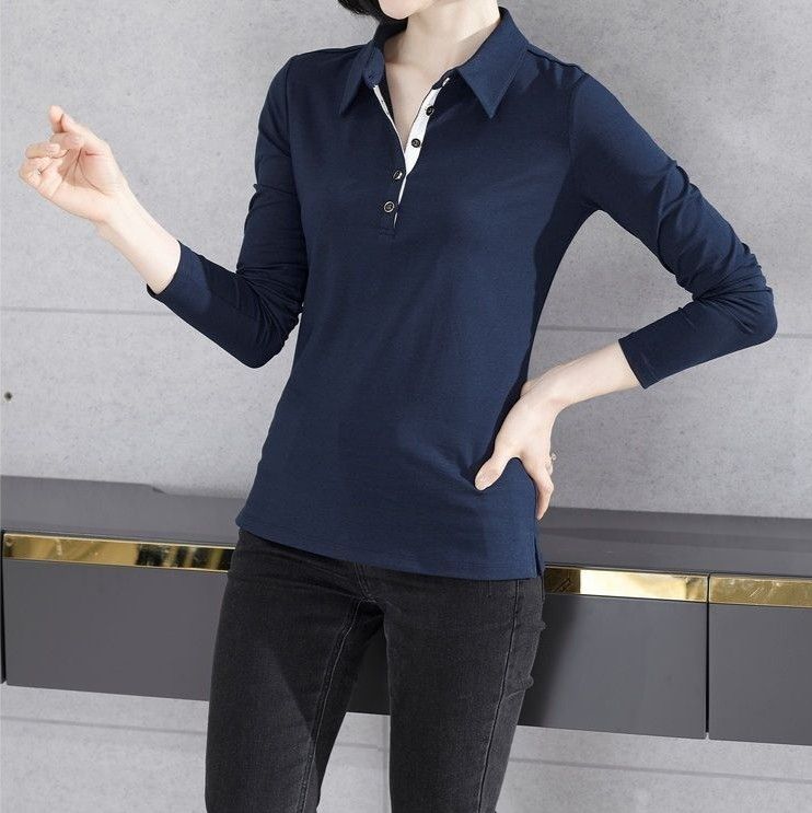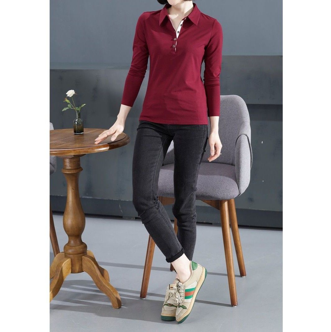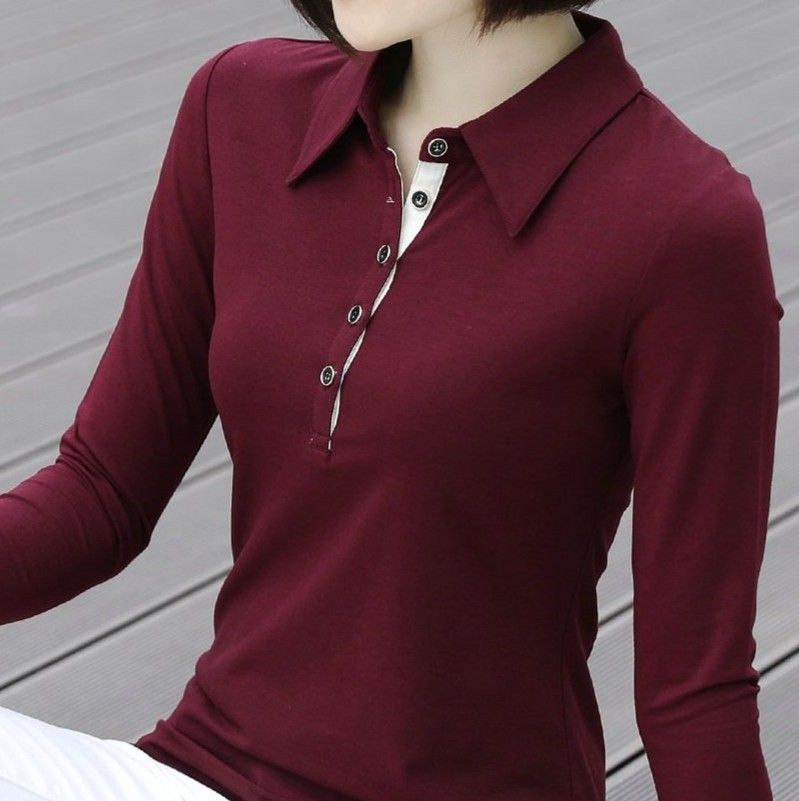 シンプルな魅力が際立つレディース長袖ポロシャツ。