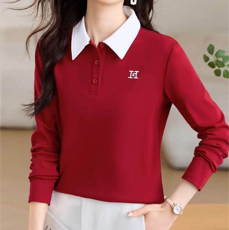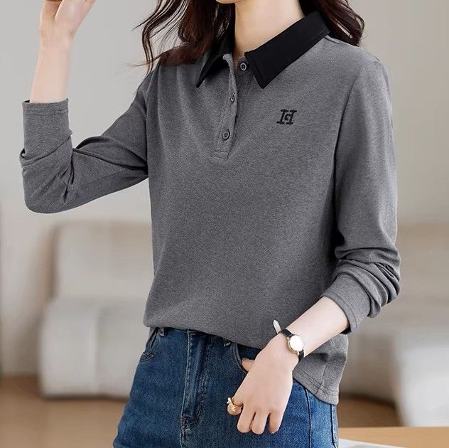 女性らしいシルエットで仕上げた長袖ポロシャツです。