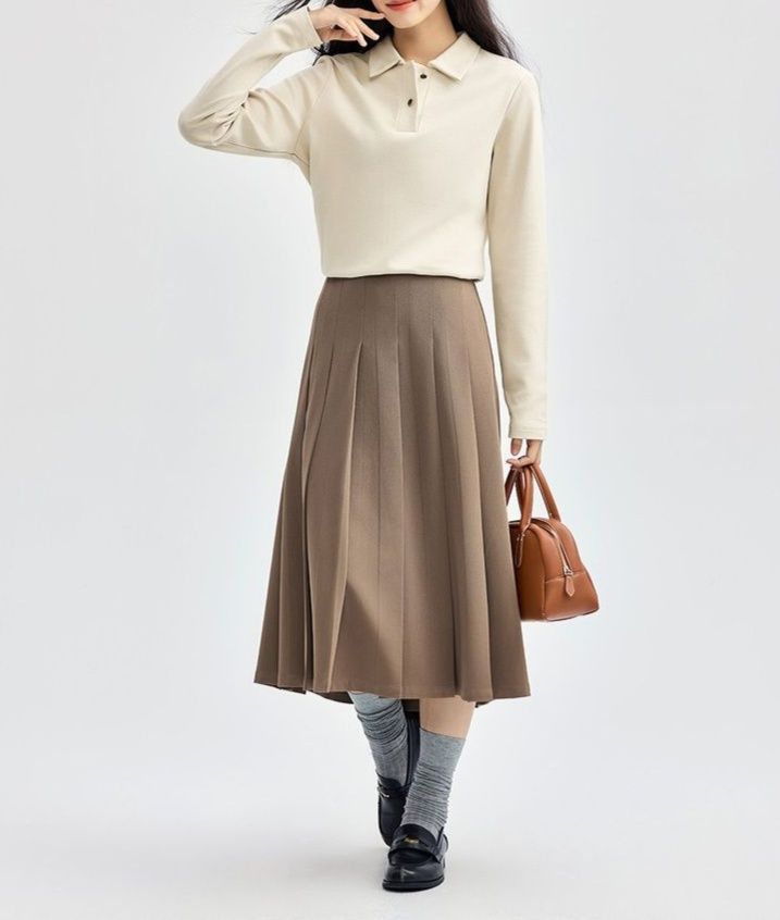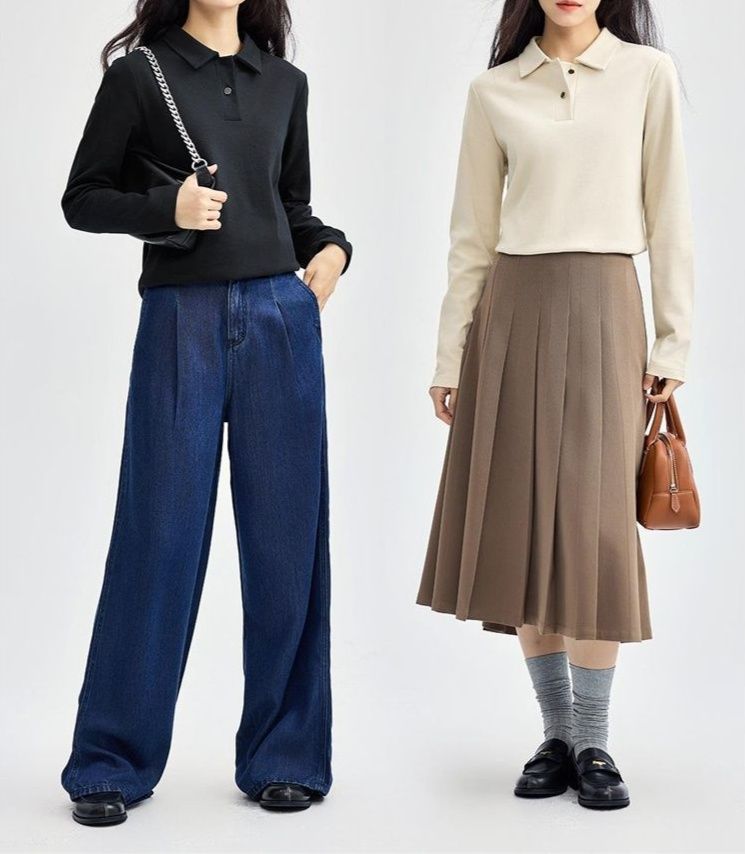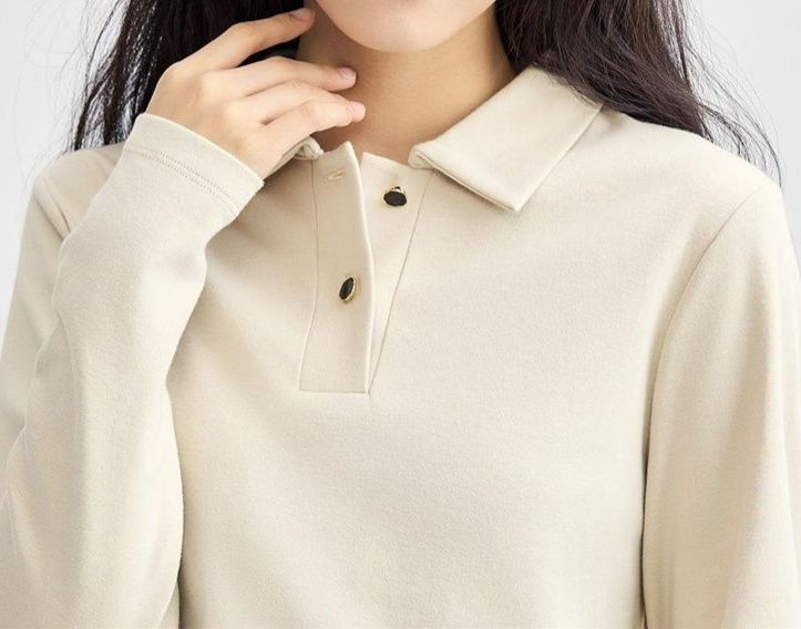 きちんとした襟とボタンが付いたポロシャツスタイルで、カジュアルながらも品のある印象を演出