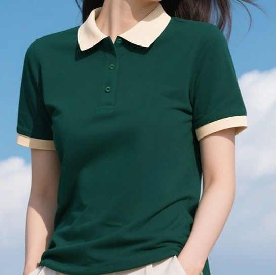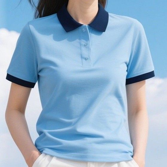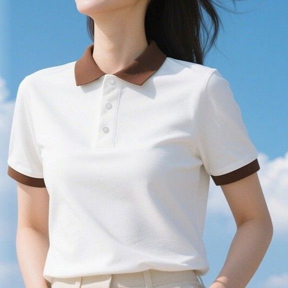 襟付きのクラシックなポロシャツスタイルで上品な印象を演出し、カジュアルからビジネスシーンまで対応