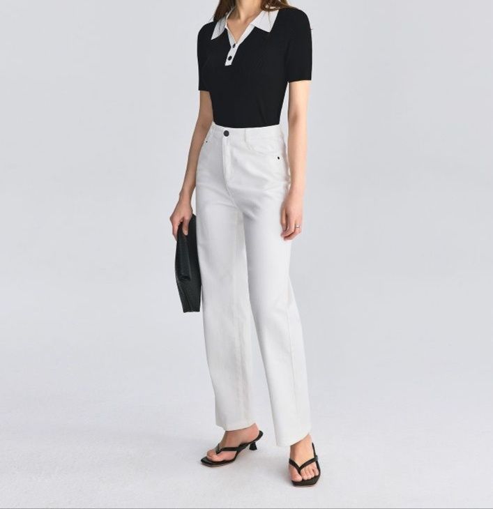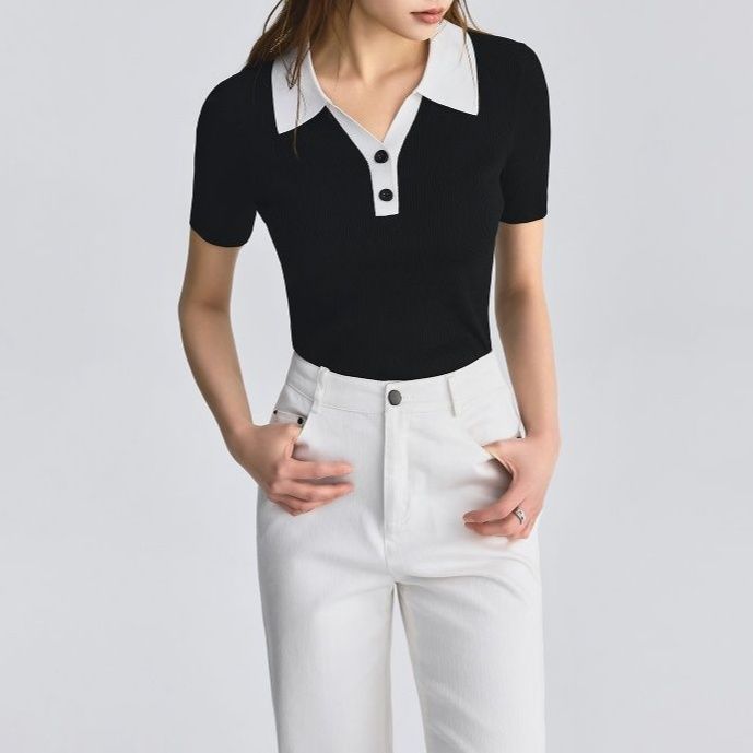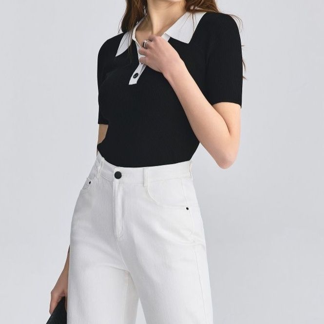 白い襟と前立てが効いたポロシャツ風のデザインで洗練された印象を演出