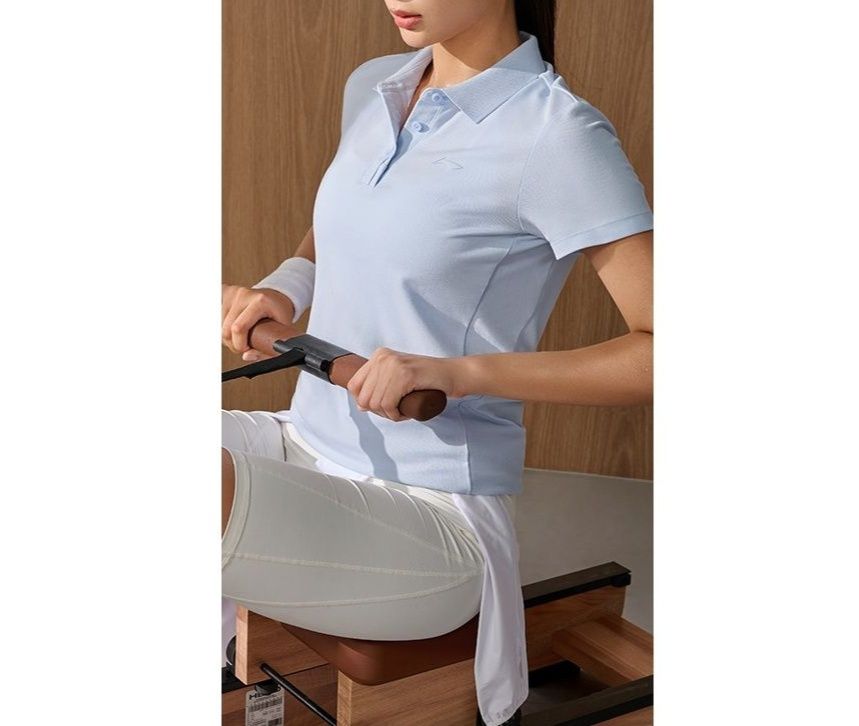 襟元のデザインがスポーティながら上品な印象を与えるポロシャツ レディースは、トレーニングやジョギングなど様々な運動に最適なニットウェアです。
