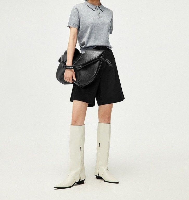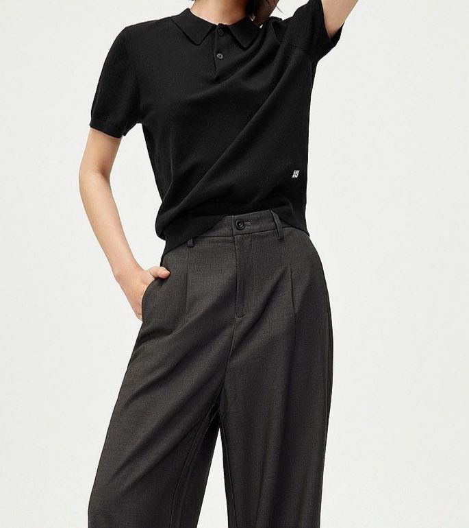 きちんと感のあるポロ襟が洗練された印象を与え、大人っぽい着こなしを演出