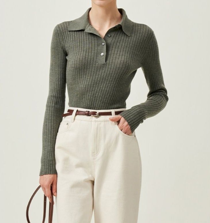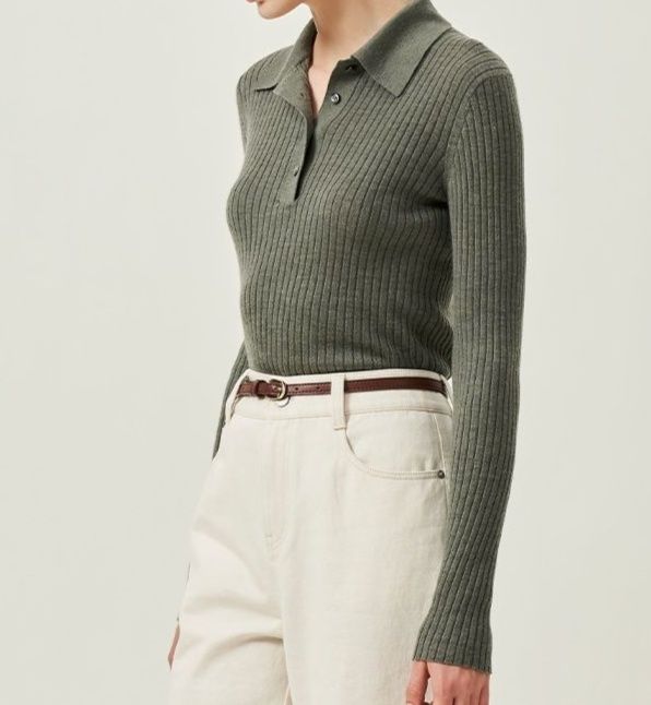 ポロシャツ風の襟元が上品で知的な雰囲気を醸し出す