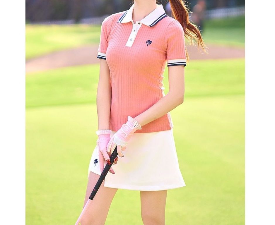 スタイリッシュなリブ編みが特徴的な半袖ポロシャツです。