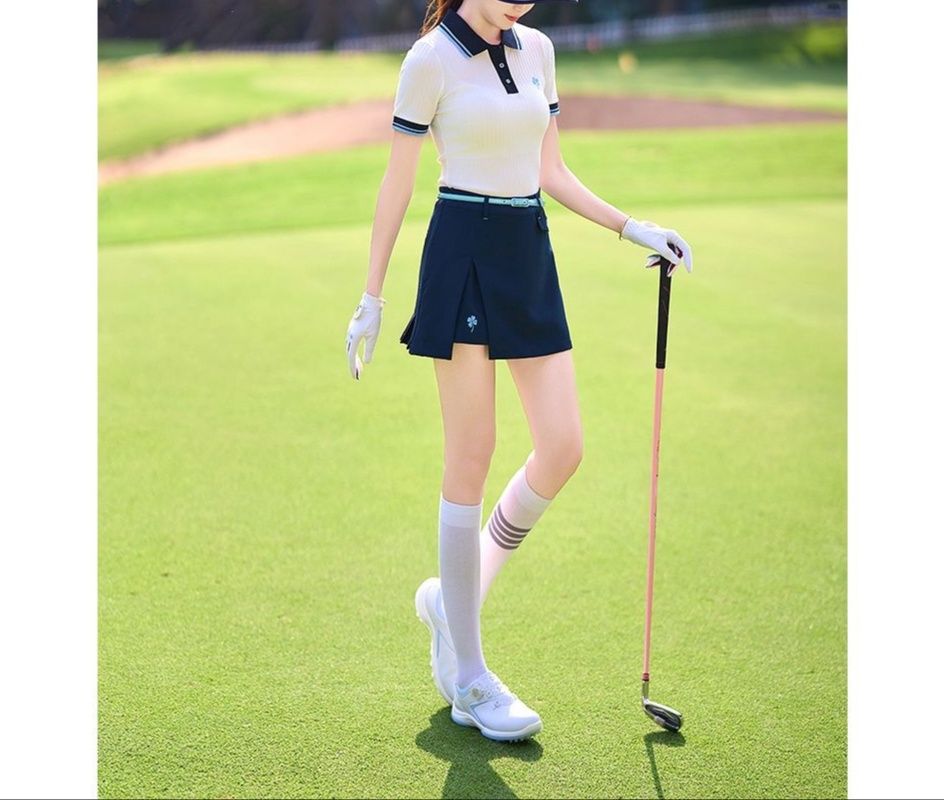 白い襟と袖口の配色ラインが洗練された印象を与え、スポーティーながらも上品な仕上がり