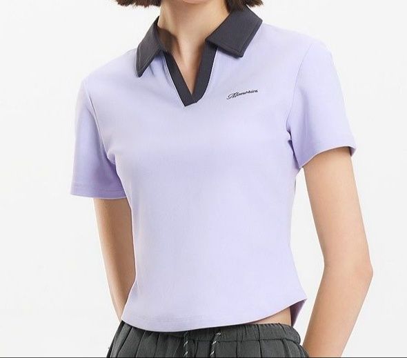 洗練された襟元のバイカラーデザインが特徴的な半袖ポロシャツです。