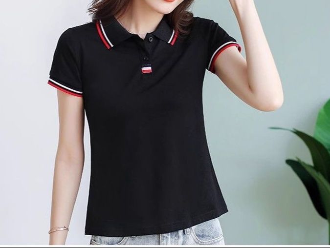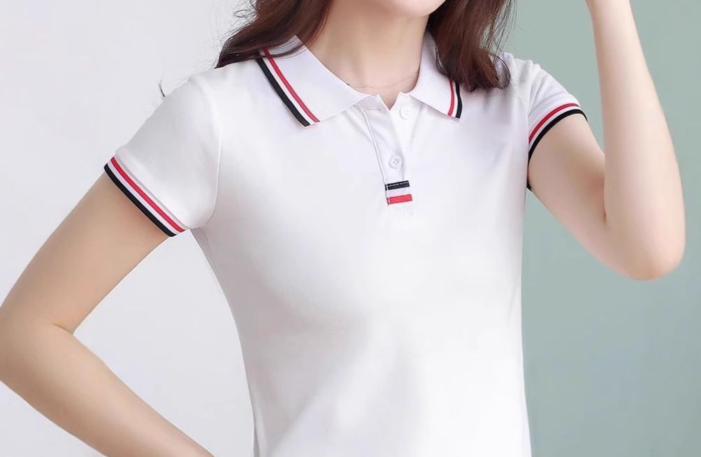 襟元と袖口にアクセントラインが入った洗練されたデザインが魅力のポロシャツ レディース商品です。