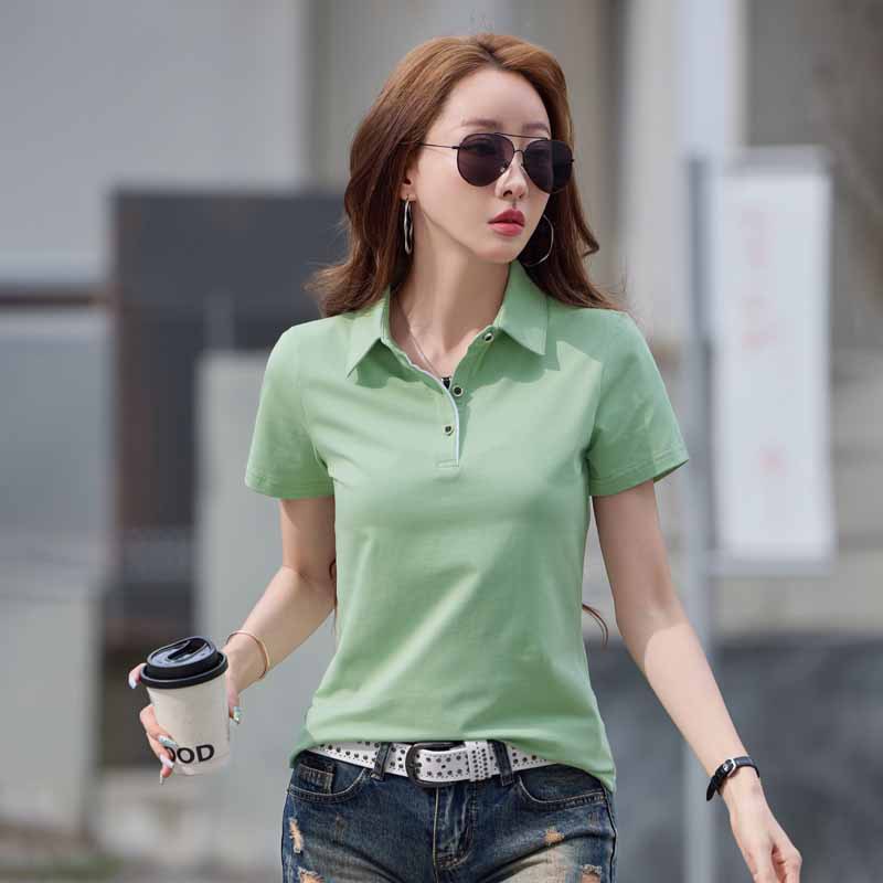 きちんとした襟付きのポロシャツスタイルで、カジュアルながらも品のある洗練された印象を演出