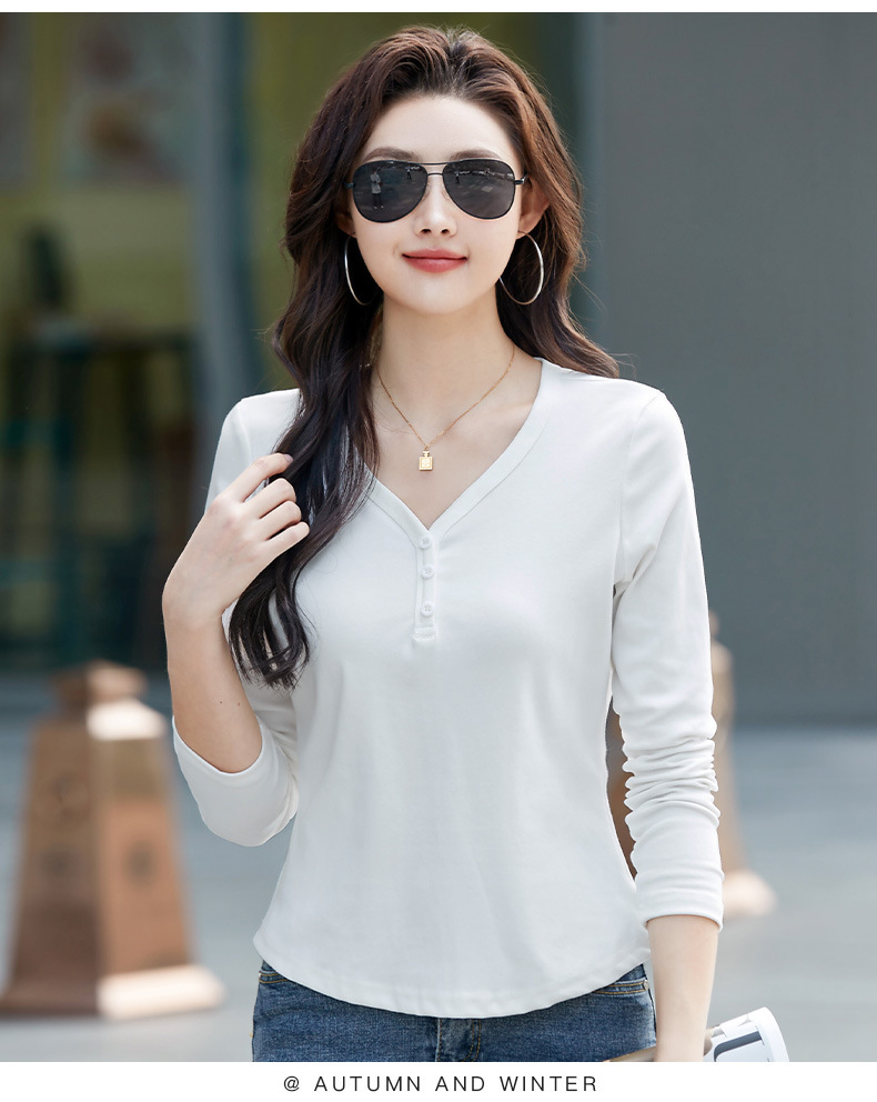 上品なVネックラインが首元をすっきりと見せ、大人の女性らしい洗練されたスタイルを演出