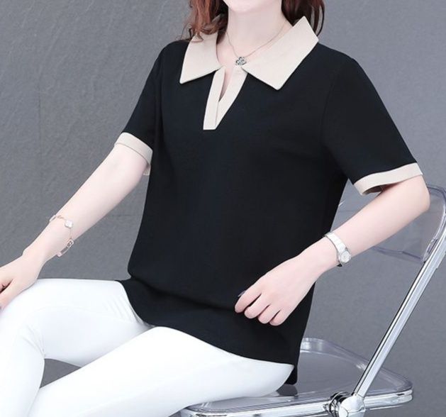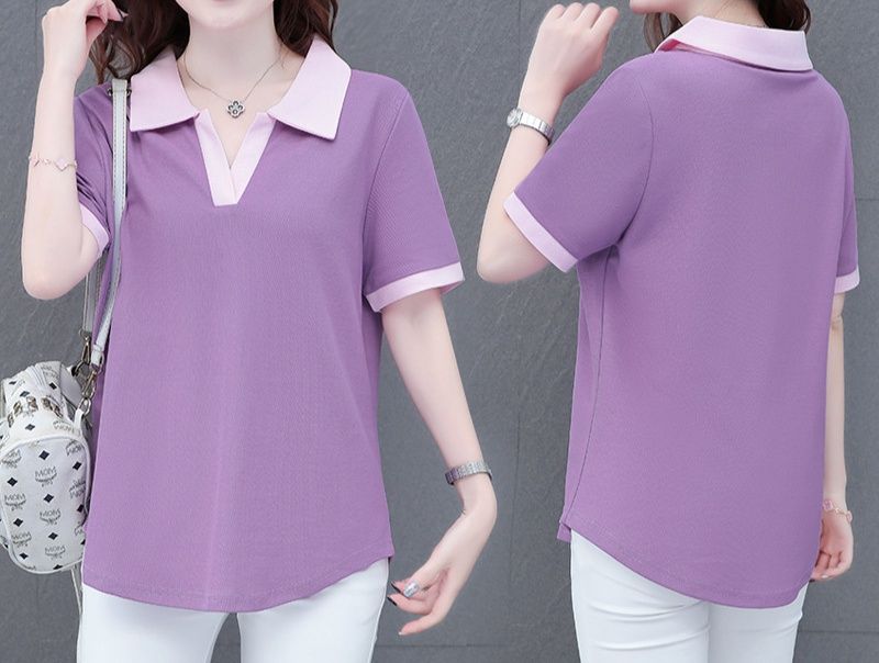襟部分に配色デザインを施したエレガントなレディース ポロシャツです。