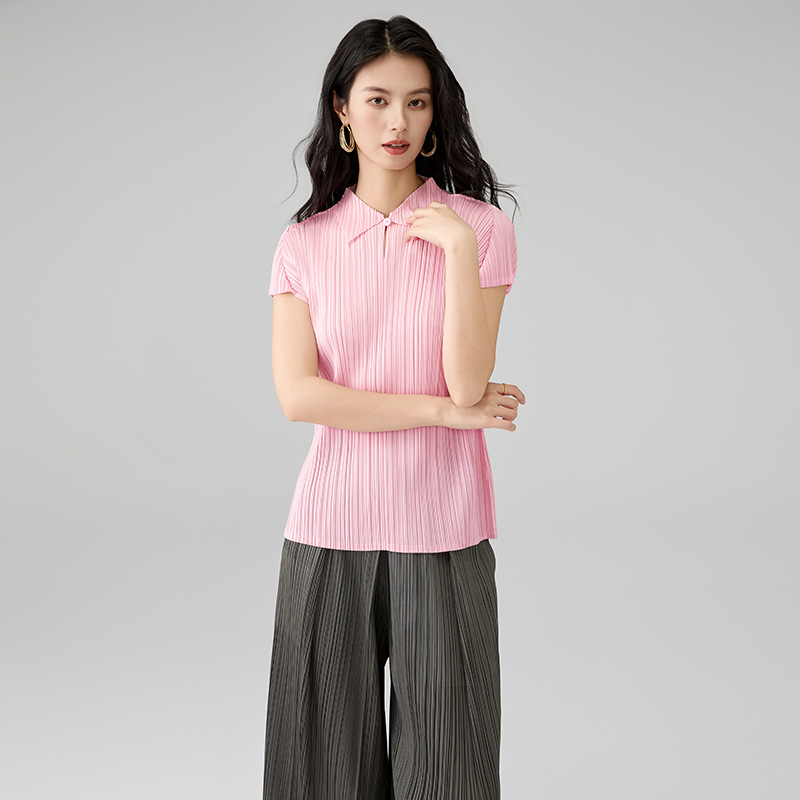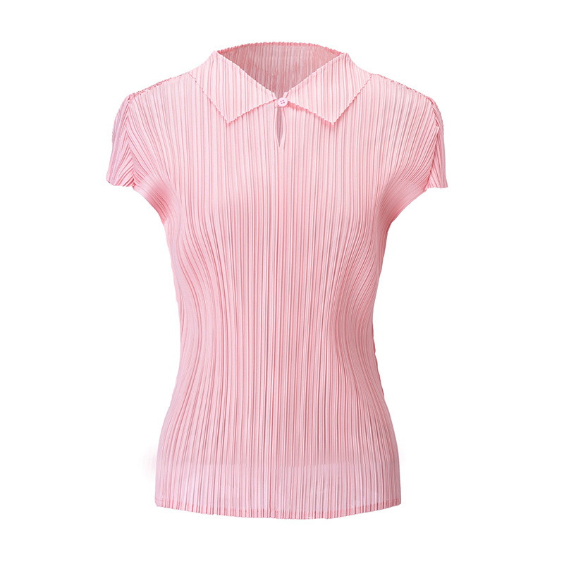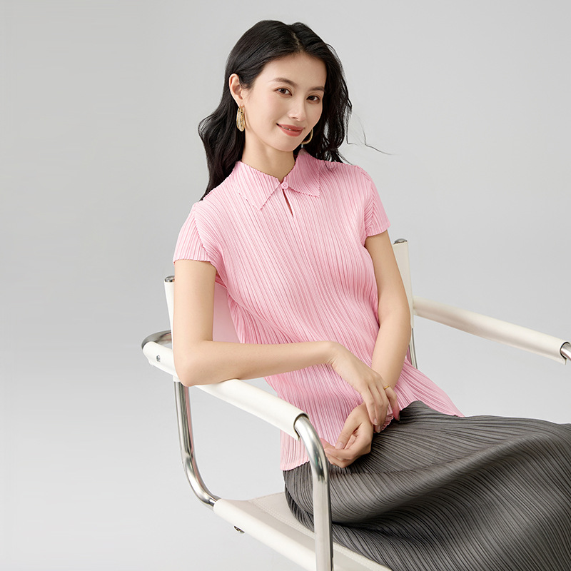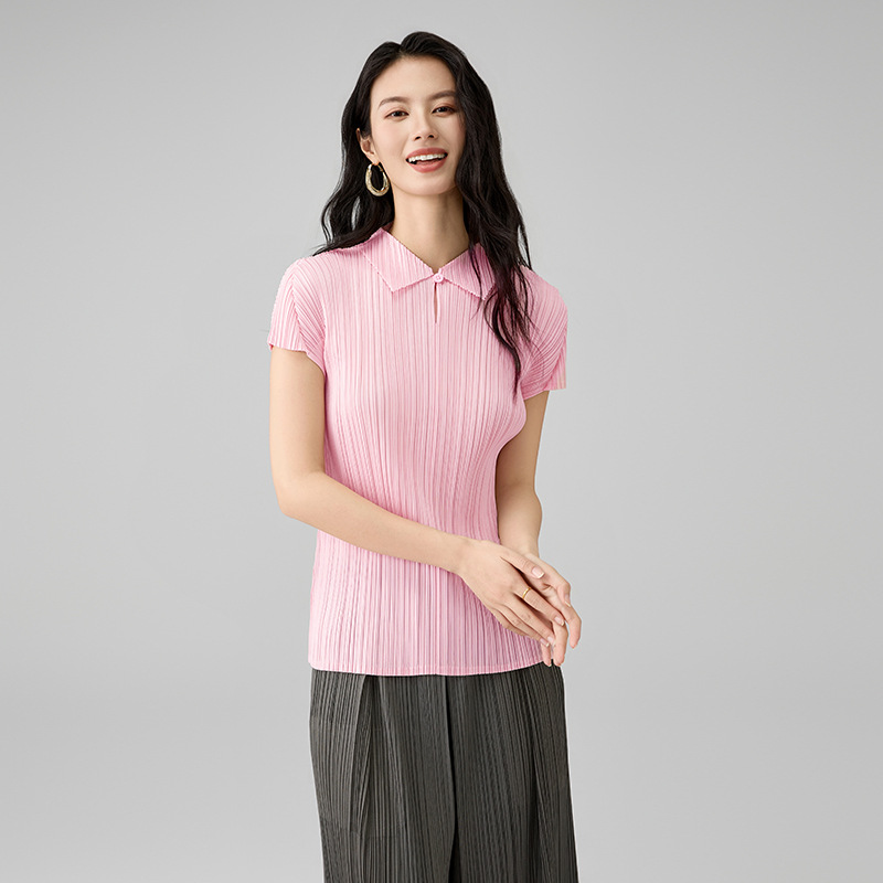上品な縦プリーツ加工が特徴のレディース ポロシャツです。