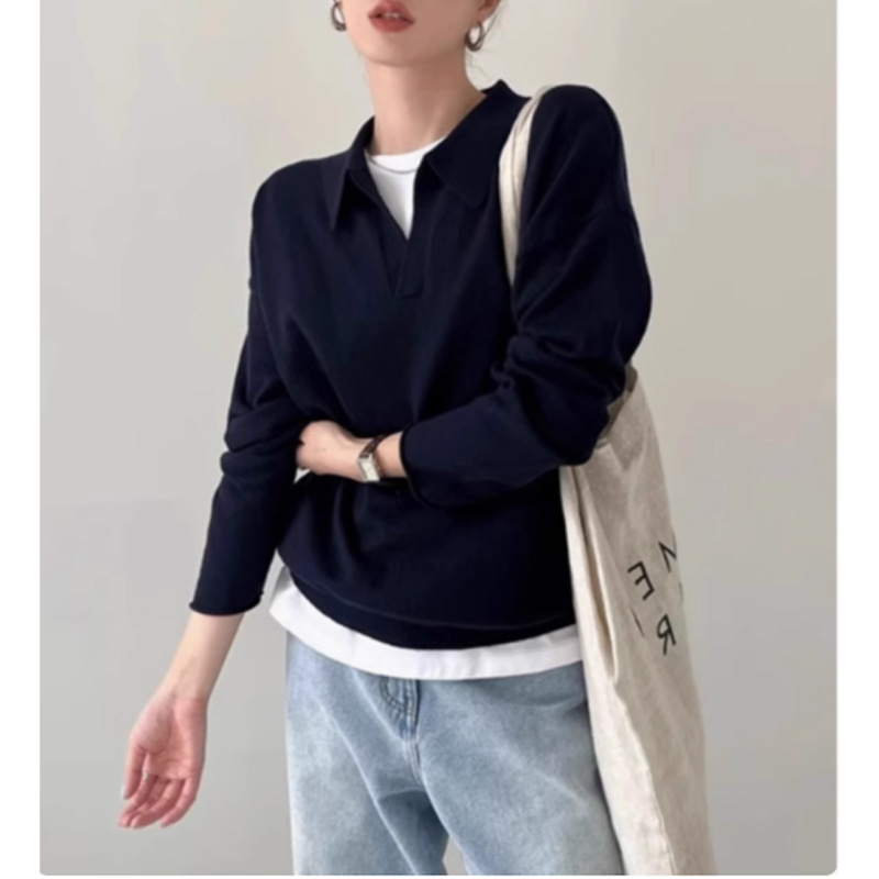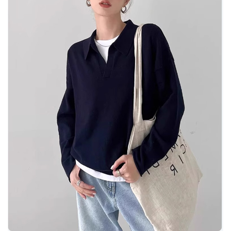 開襟の襟元が抜け感を演出し、インナーとの重ね着も楽しめるデザインです。