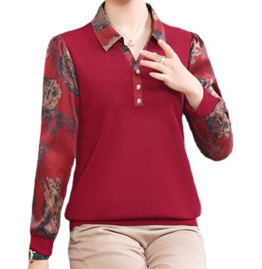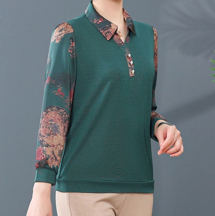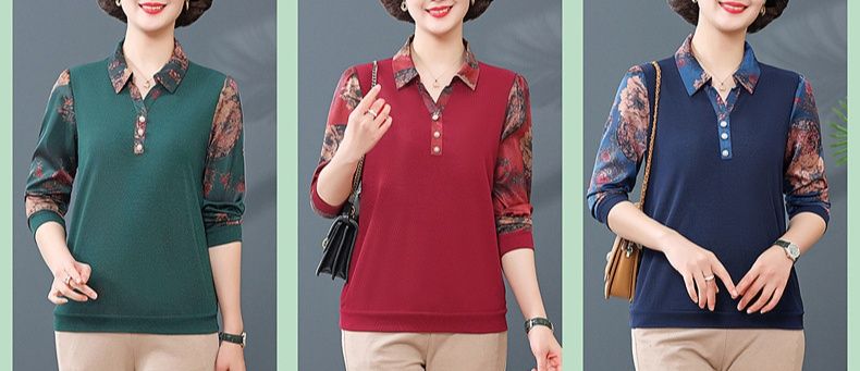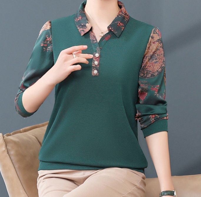 身頃は無地でスッキリとした印象ながら、袖部分の華やかな花柄が上品なアクセントになっています。