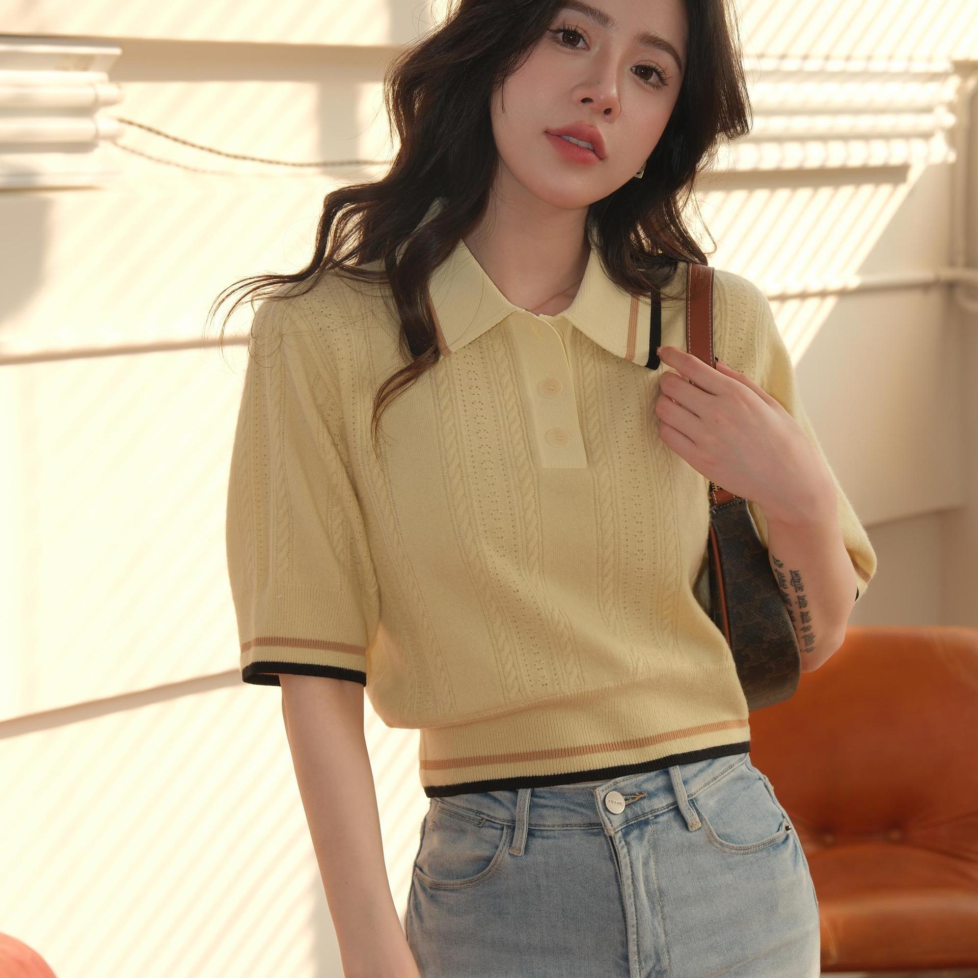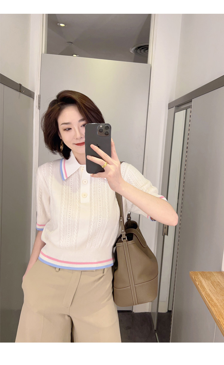 ニット素材を使用した半袖デザインで、柔らかな着心地と程よいフィット感が魅力です。