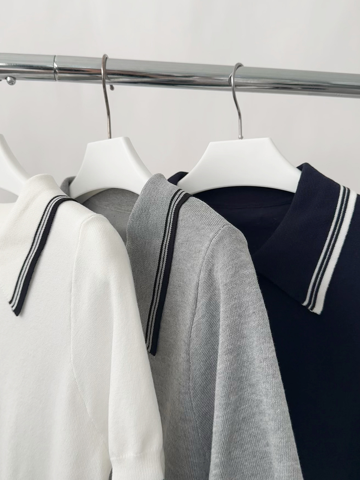 ニット素材で仕上げた上品な風合いが魅力で、きちんと感とカジュアルさを両立しています。