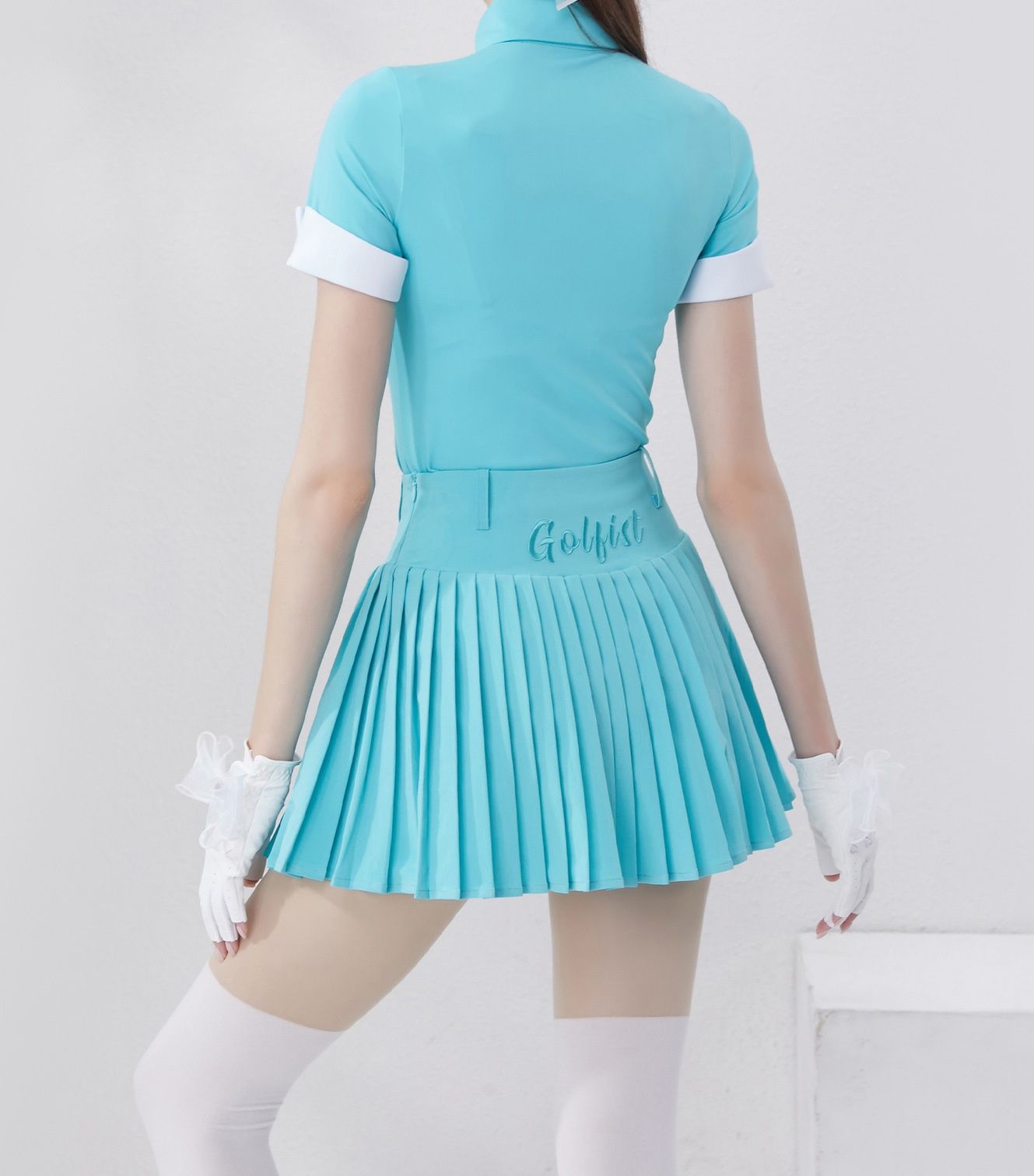 半袖の袖口と襟元には配色パイピングを施し、スポーティーながらも上品な印象に仕上げました。
