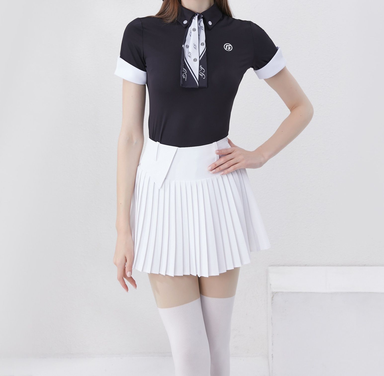 プリーツスカートとのコーディネートで、より洗練されたスタイルが完成します。