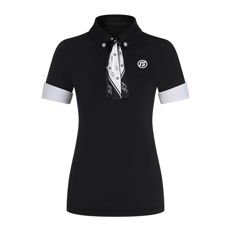 襟元のリボンタイがエレガントなレディース ポロシャツです。