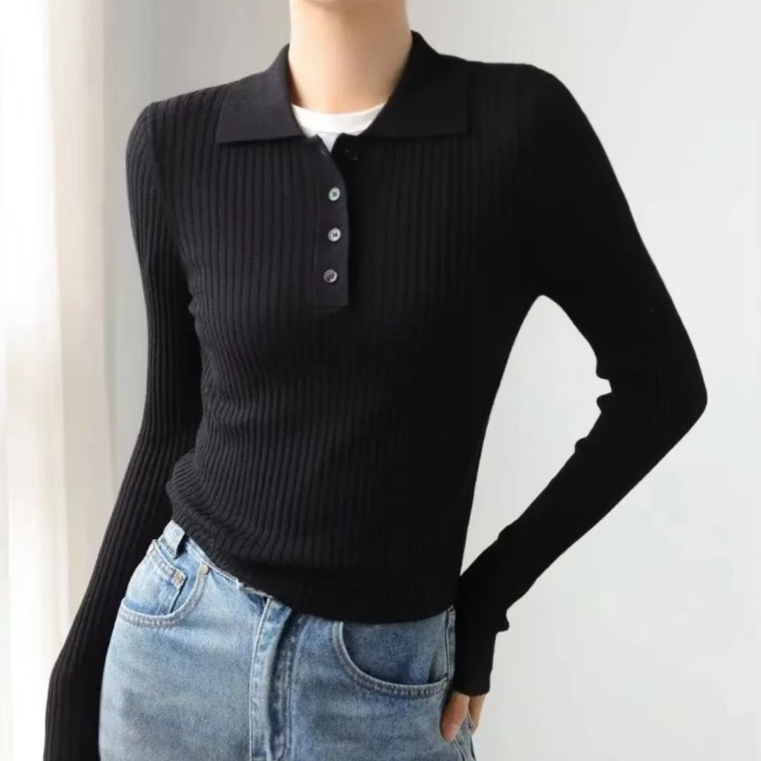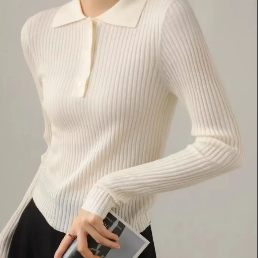 上品な縦リブ編みが全体に施されたレディース ポロシャツです。 身体のラインに優しくフィットする伸縮性のあるニット素材で、着心地の良さと女性らしいシルエットを両立しました。 きちんと感のある襟とボタンデザインで、カジュアルからオフィススタイルまで幅広く活躍します。 長袖タイプなので季節の変わり目にも重宝する一着です。 ボトムスを選ばず合わせやすく、デイリーユースに最適なアイテムとなっています。