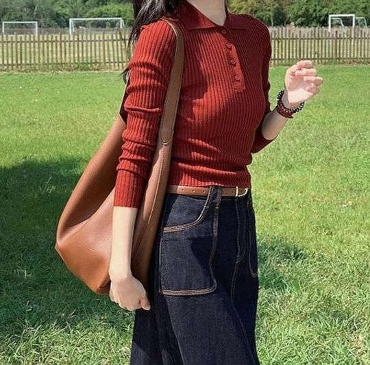 長袖で季節の変わり目にも重宝し、デニムやスカートなど様々なボトムスと相性抜群です。