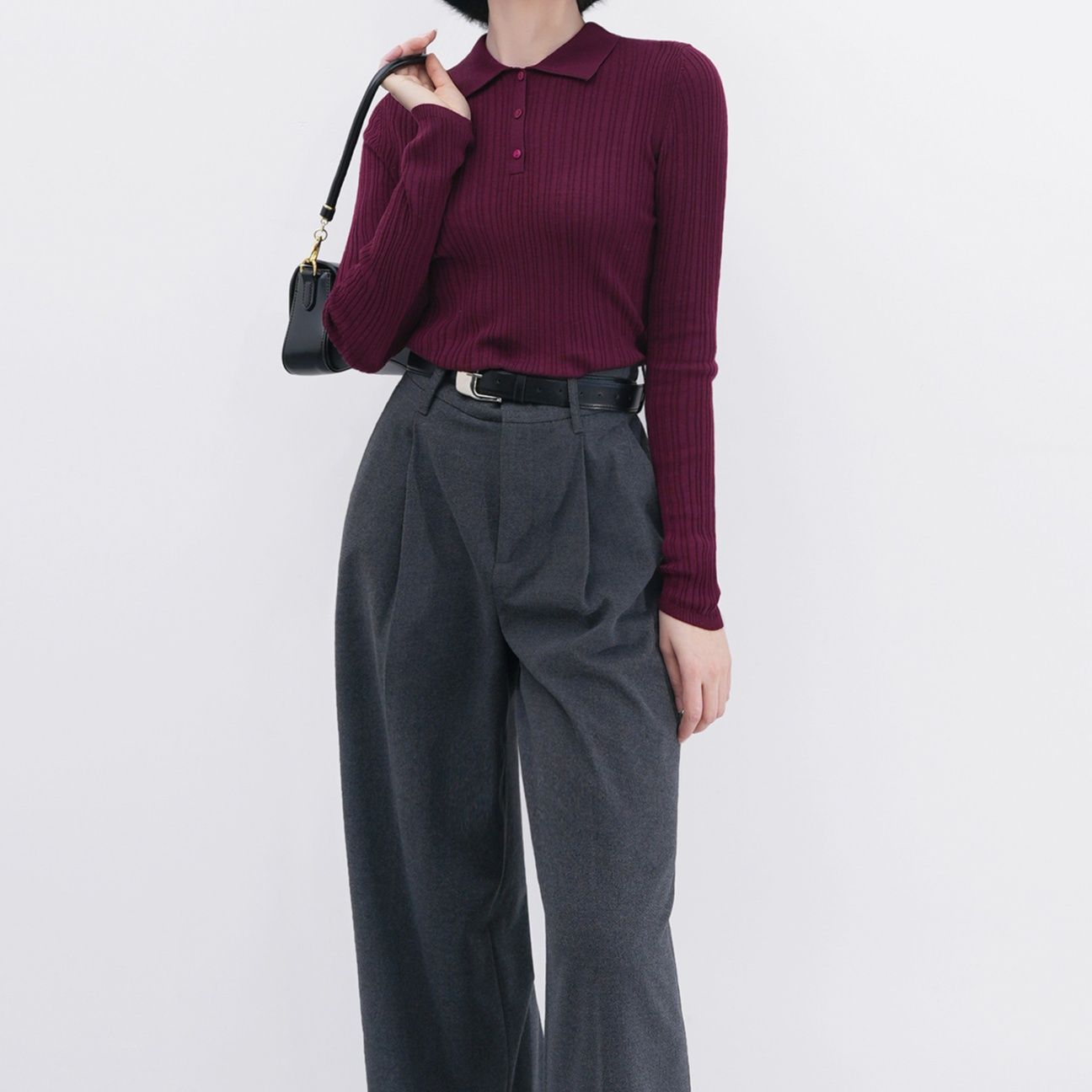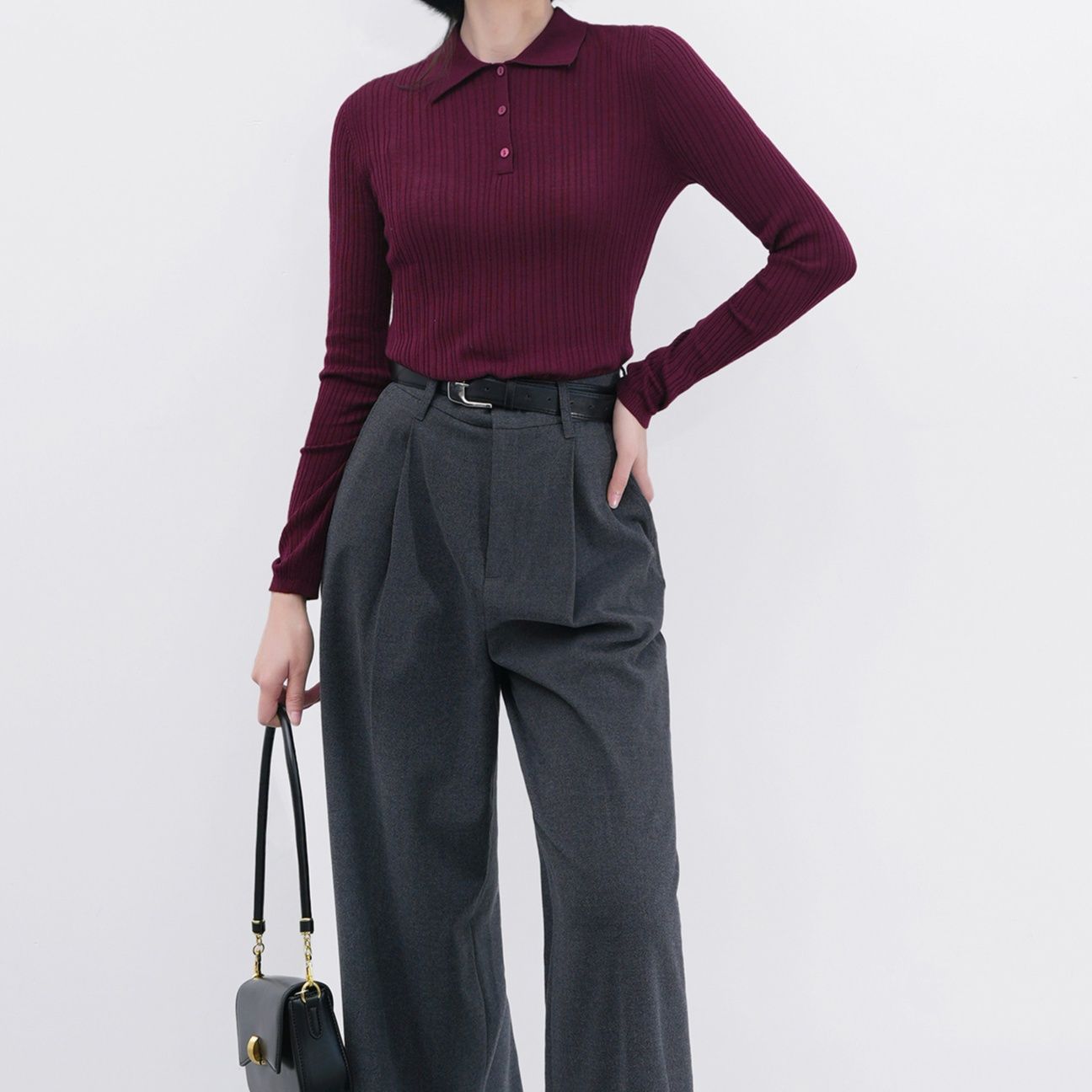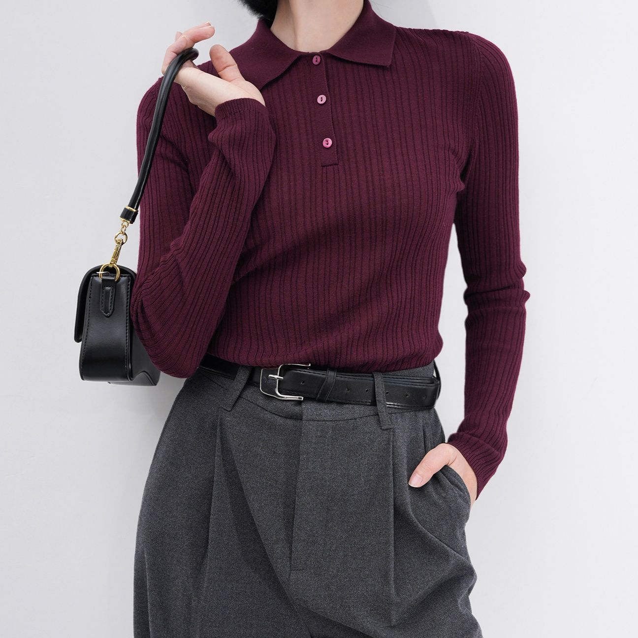 きちんとした襟と前立てボタンがポロシャツ風の知的な印象を与え、大人の品格を演出します。