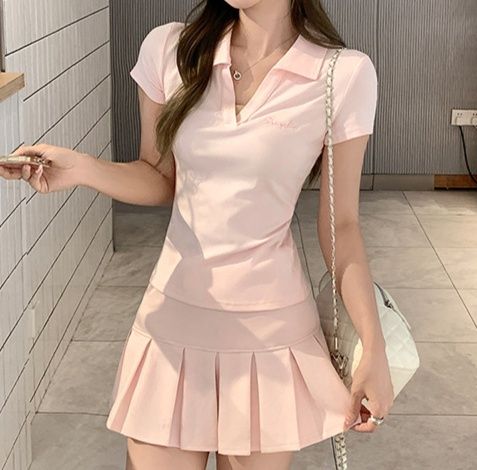 ポロシャツ風の襟とボタンデザインでカジュアルながらも洗練された印象を演出