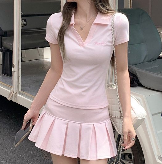 清潔感のある襟元がきちんと感を与え、プリーツスカートとの相性も抜群です。
