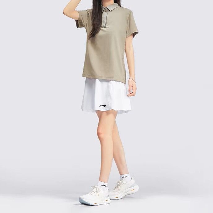 上品な襟元デザインと軽やかな着心地が特徴で、スポーツシーンだけでなく日常のカジュアルコーデにも最適。