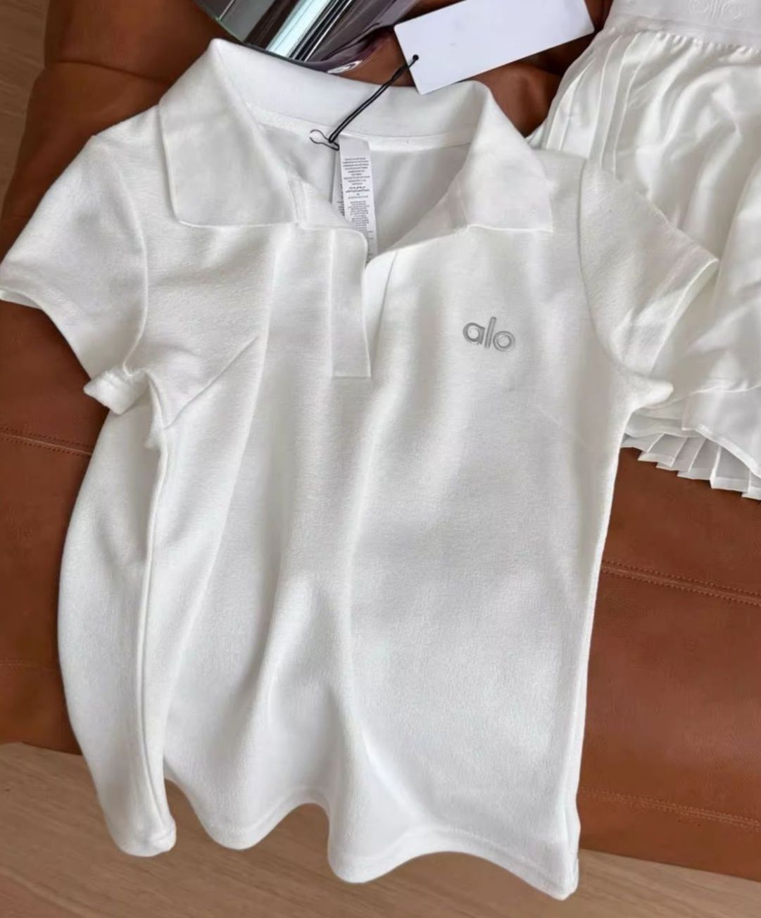 半袖デザインで動きやすく、すっきりとした襟元が上品な印象を与えます。