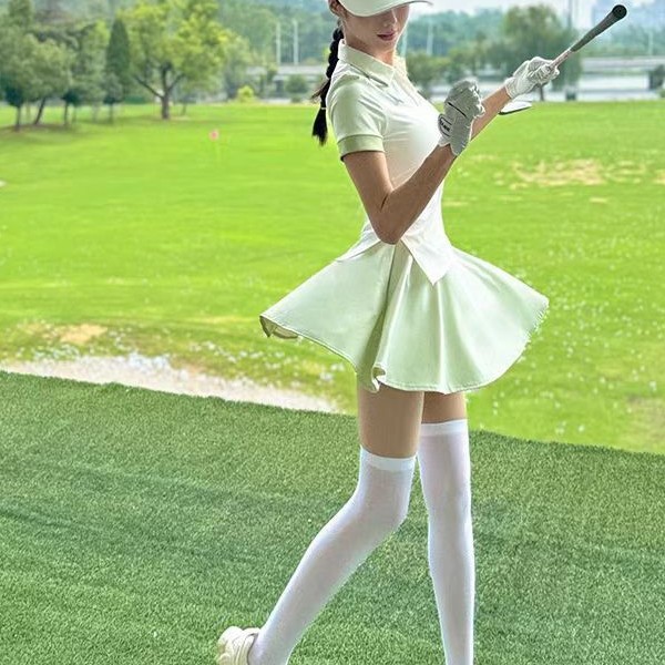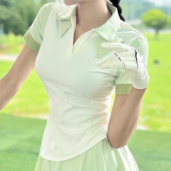 半袖で動きやすく、すっきりとしたシルエットが女性らしさを引き立てます。