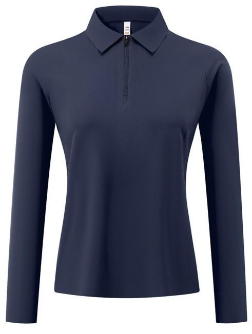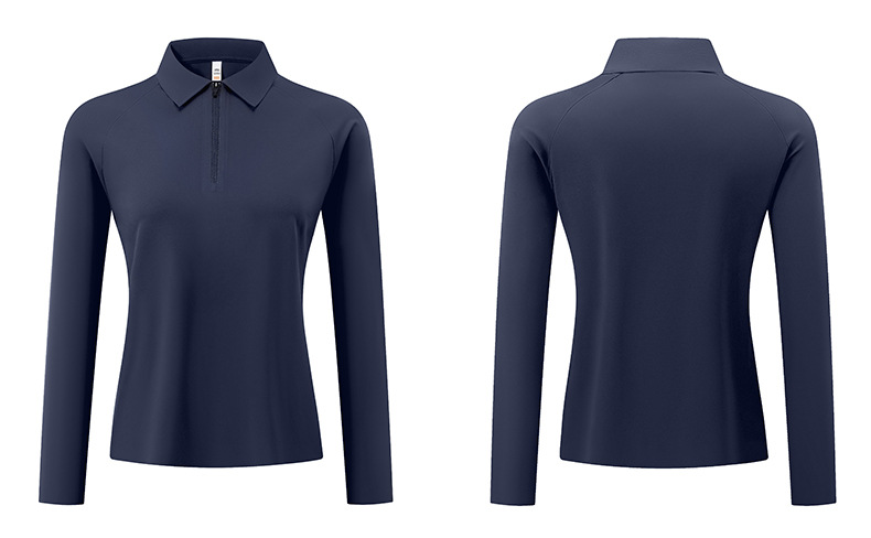 襟付きでハーフジップのデザインがきちんと感を演出しながらもカジュアルな親しみやすさも兼ね備えています