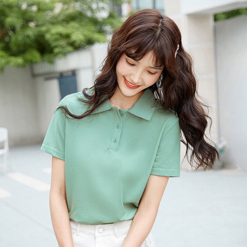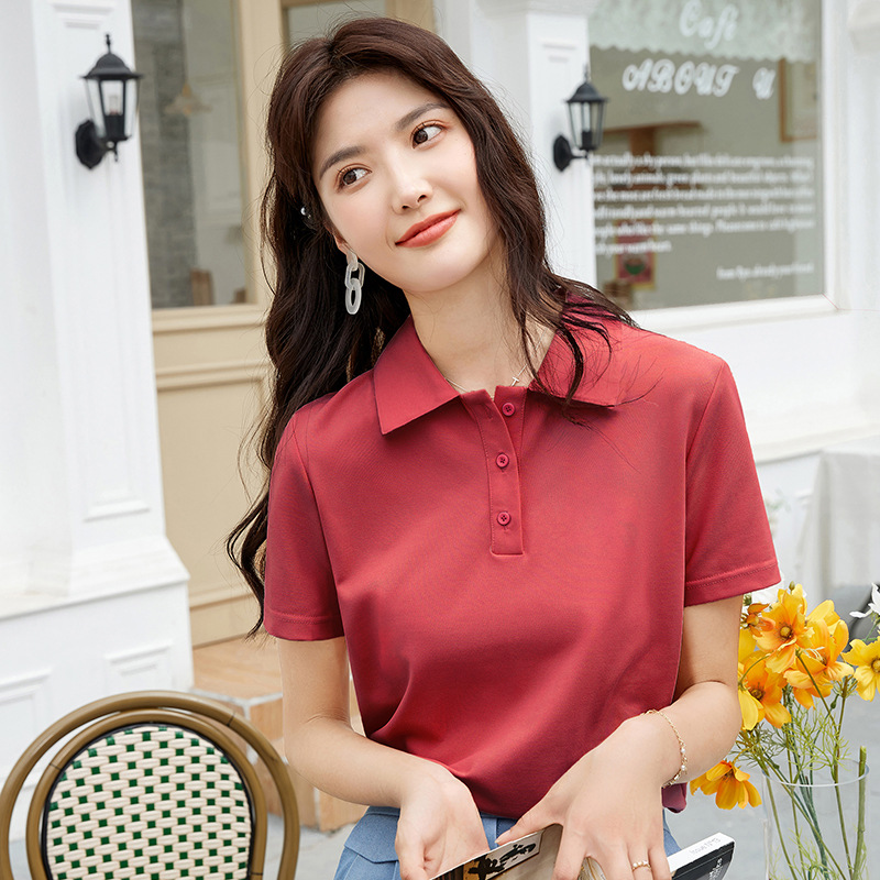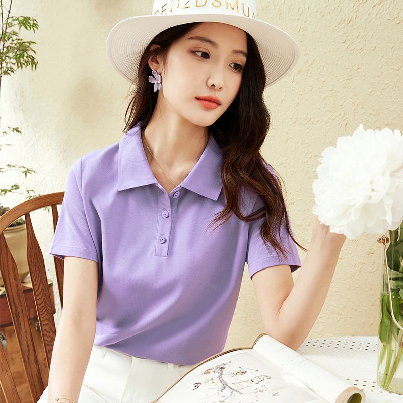 爽やかな印象を与える定番デザインのレディース ポロシャツです。