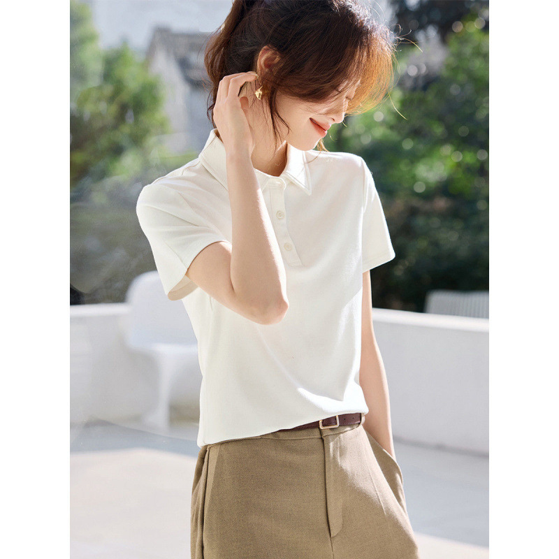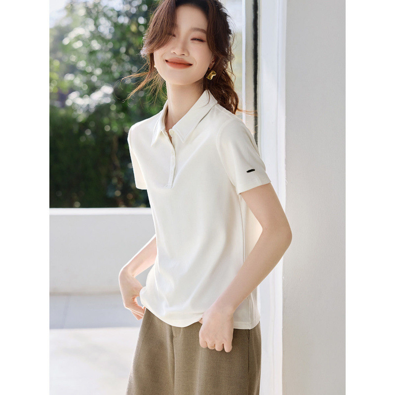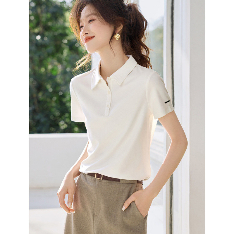 清潔感のある定番デザインのレディース ポロシャツです。
