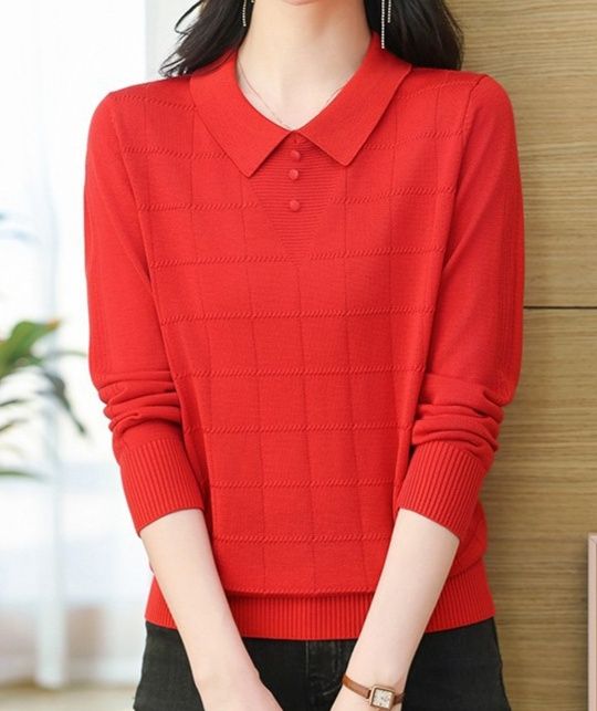 きちんとした襟元がフォーマルな雰囲気を演出し、品のある大人っぽいスタイルを作り出します。
