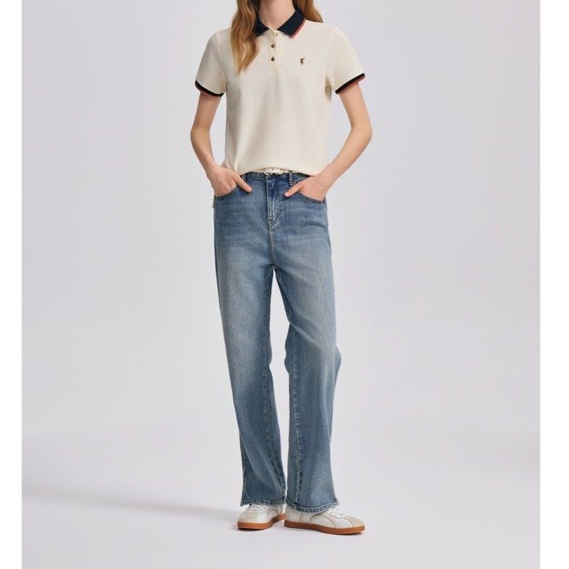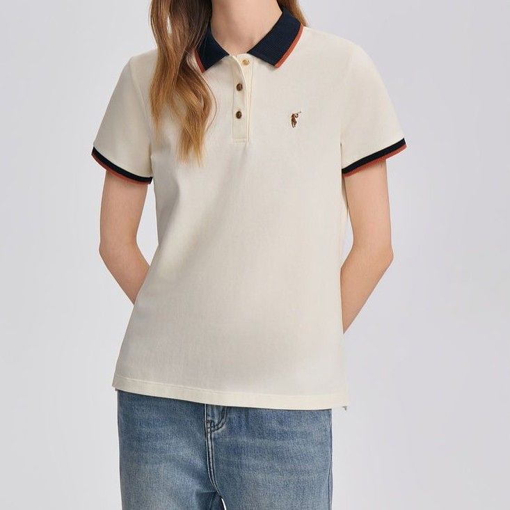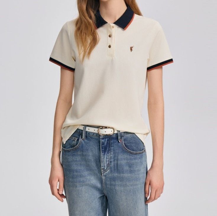 洗練された配色襟デザインのポロシャツ レディース。上質なコットン素材を使用し、肌触りの良さと耐久性を兼ね備えています。