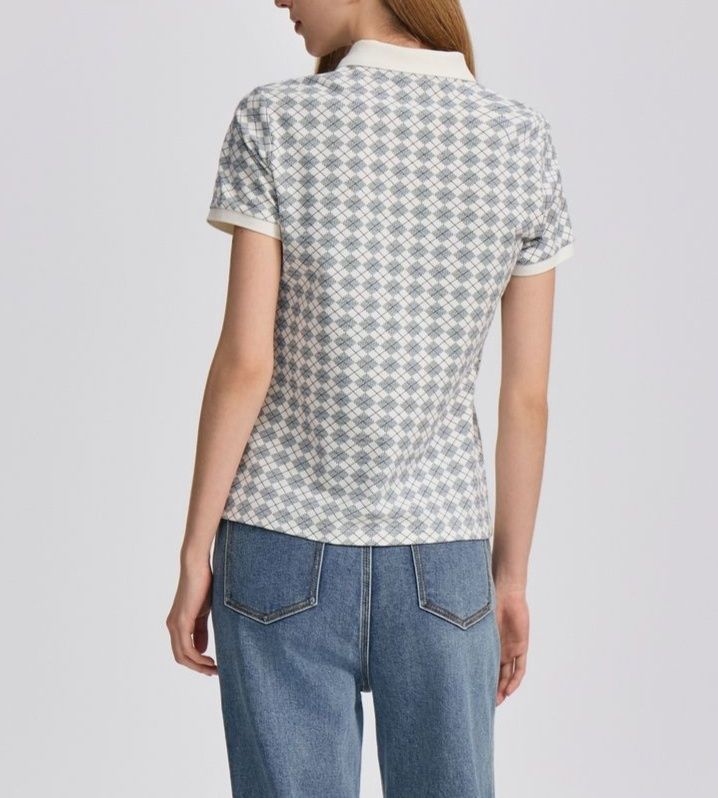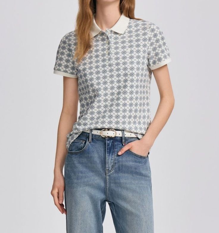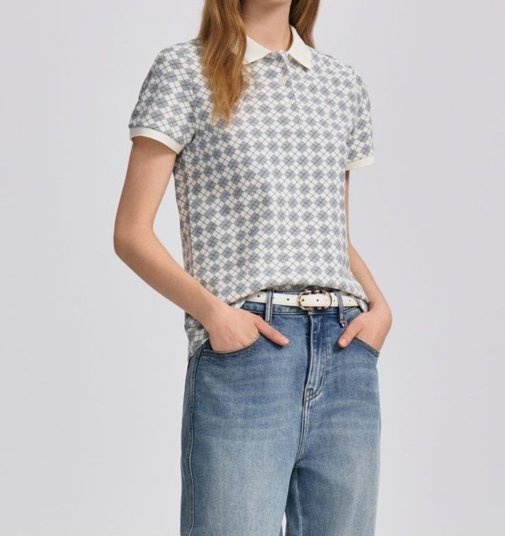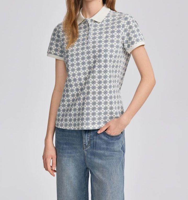 上品な菱形模様が目を引くレディース向け半袖ポロシャツです。