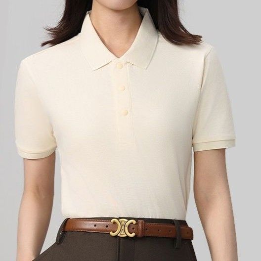 襟付きのポロシャツスタイルで上品かつカジュアルな印象を演出